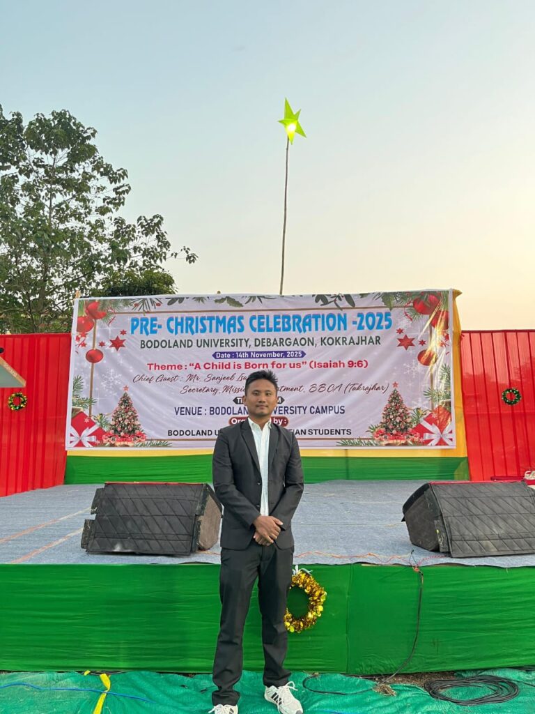 Every year, the Christian members of Bodoland University (BU) come together to organize the Pre-Christmas Celebrations – an event filled with music, fellowship, and the joyful spirit of Christmas. This annual gathering has become a cherished tradition on the BU campus, which brings warmth and unity among the students, faculties, other members.