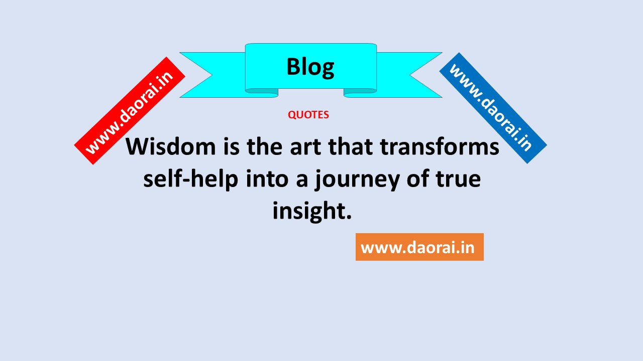 The statement “Wisdom is the art that transforms self-help into a journey of true insight” means that wisdom helps turn from basic self-help advice into deep and meaningful understanding. Self-help often gives tips and motivation to improve life, but without wisdom, it can feel shallow or temporary.
